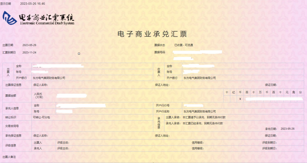 继2023年4月22日新一代票据管理系统成功上线后,5月26日,PA视讯财务新一代票据管理系统成功支持成员企业开出首张电票。