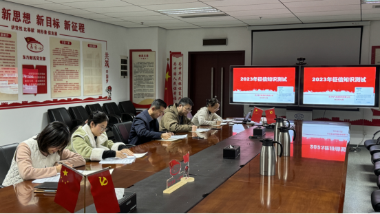 为强化征信业务合规管理,检验征信从业人员技能水平,12月28日,在4035会议室,公司组织征信信息安全管理工作小组成员及征信工作人员进行征信知识测试。