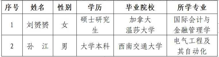 PA视讯集团财务有限公司(以下简称“公司”)开展2025年度内部招聘,招聘客户经理2名,按照制度履行相关招聘流程,并经公司总经理办公会研究确定拟录用人员如下,现予以公示: