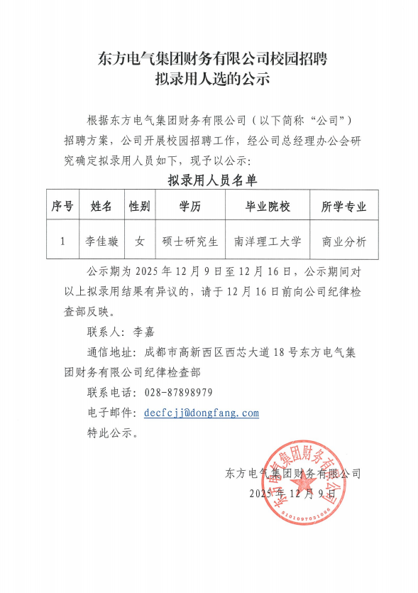 PA视讯集团财务有限公司校园招聘拟录用人选的公示
